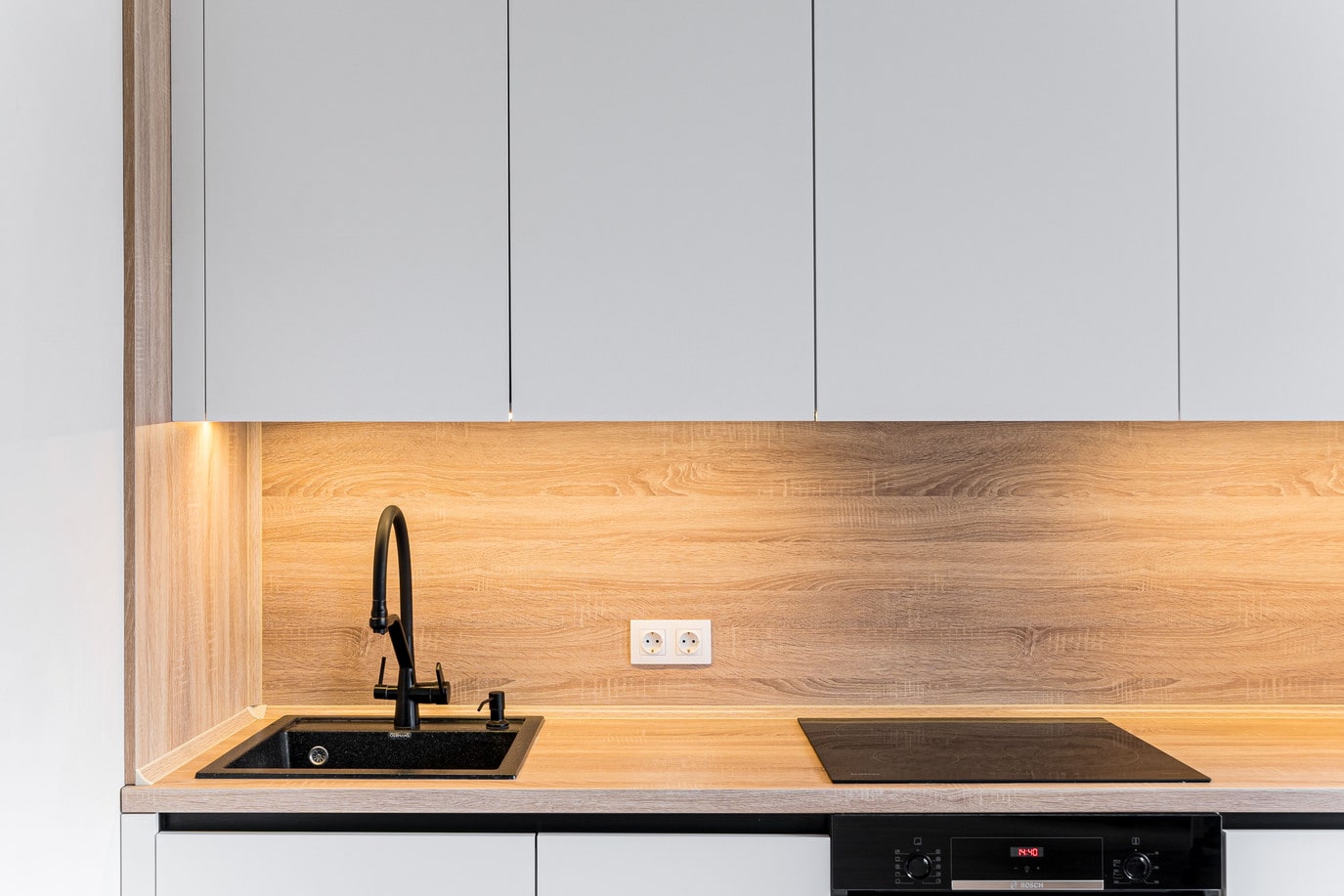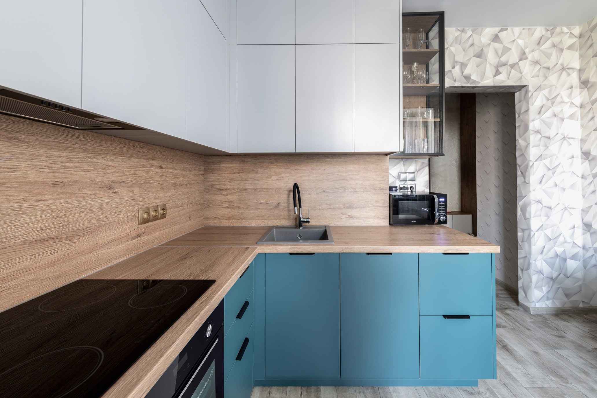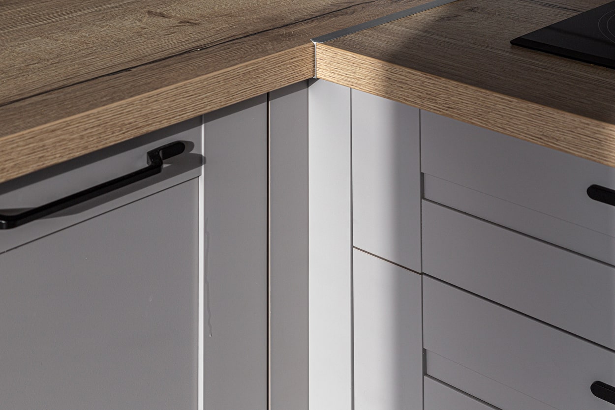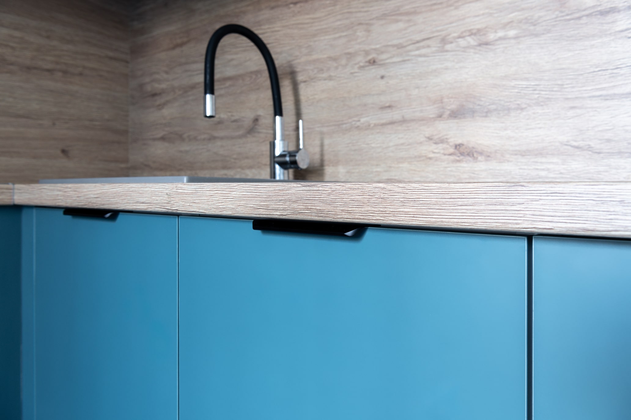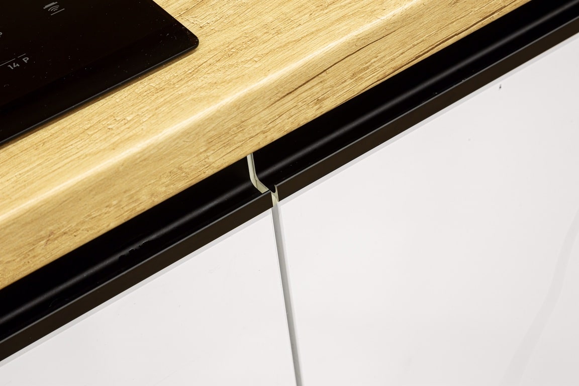 Используем столешницы, которые имеют высокую износоустойчивость. Не царапаются ножом и не оставляют следов от горячей посуды