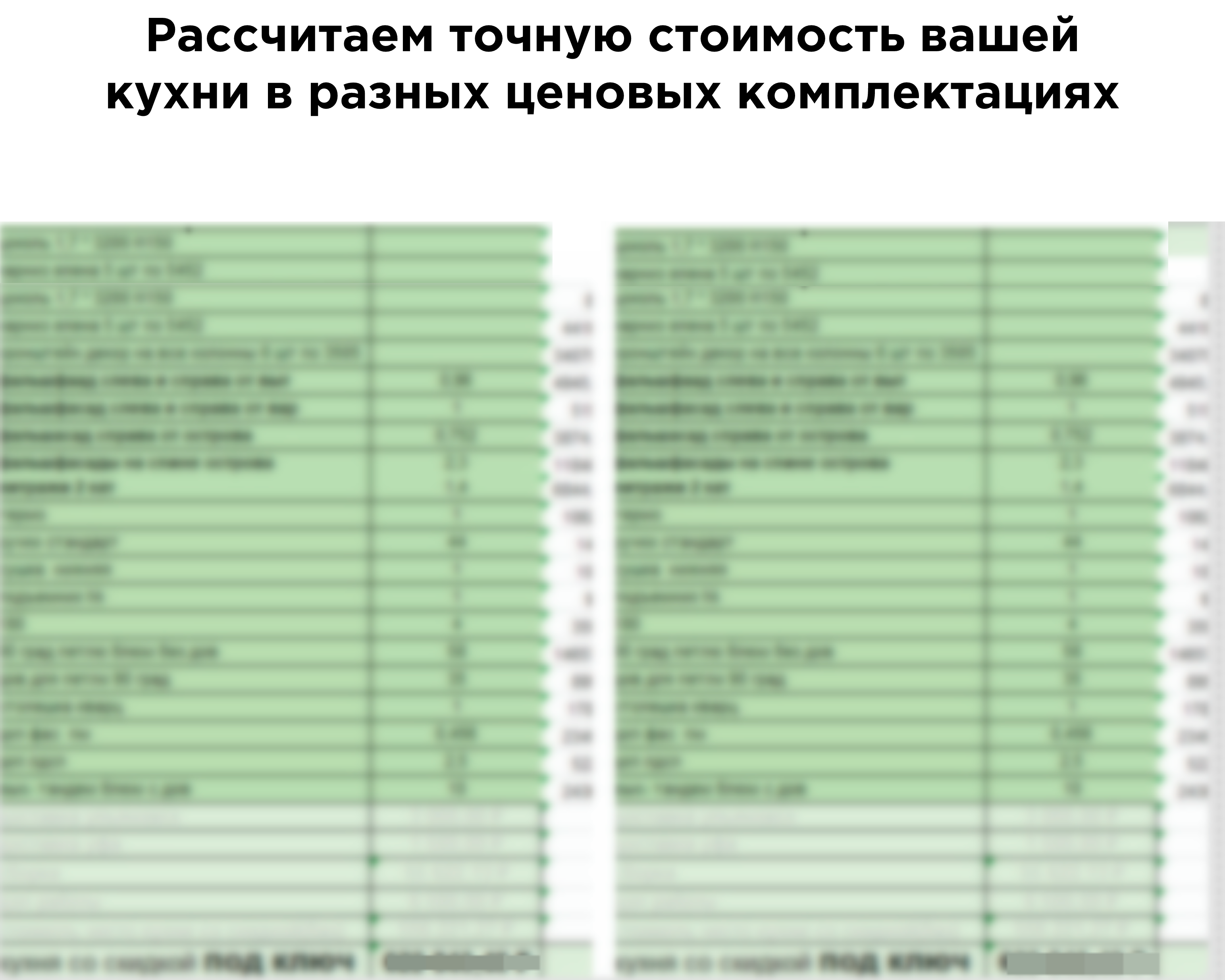 Каталог кухонь с описанием и ценами которые похожи на Вашу и разбор проектов в разных комплектациях